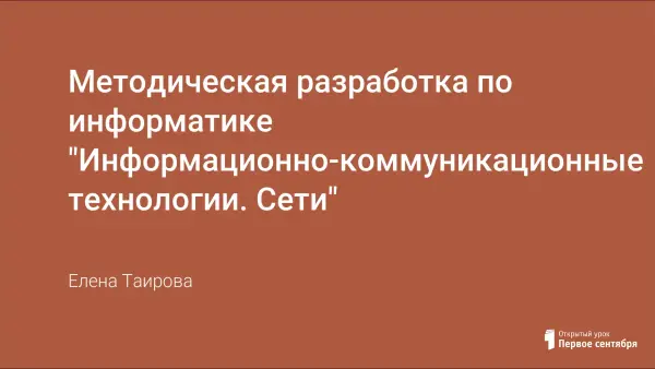 Методическая разработка урока предназначена для проведения урока информатики в 10-м классе в рамках темы: «Информационно-коммуникационные технологии работы в компьютерной сети».