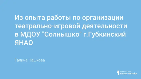 Об основных направлениях деятельности конкретного ДОУ и в частности об организации театрально-игровой деятельности.