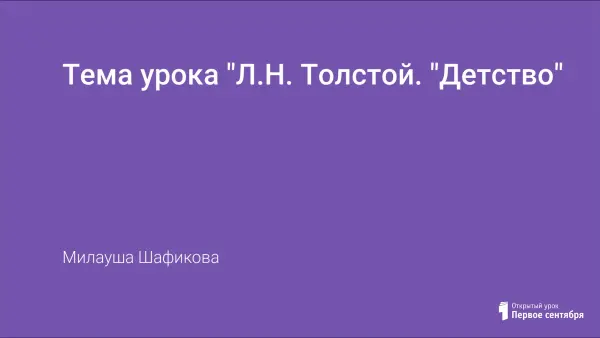 Урок литературного чтения знакомит учащихся с краткой биографией Л.Н. Толстого, историей появления повести «Детство». Занятие развивает навыки правильного, осознанного, выразительного, выборочного чтения, устной связной речи; умения воспроизводить в памяти прочитанные ранее произведения по прослушанным отрывкам; умение анализировать прочитанный текст.