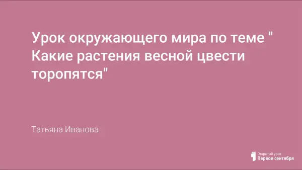На уроке уточняются и обобщаются знания первоклассников о жизни растений весной, ученики знакомятся с раннецветущими растениями, выясняют причины раннего цветения, учатся отличать некоторые раннецветущие растения от остальных растений.