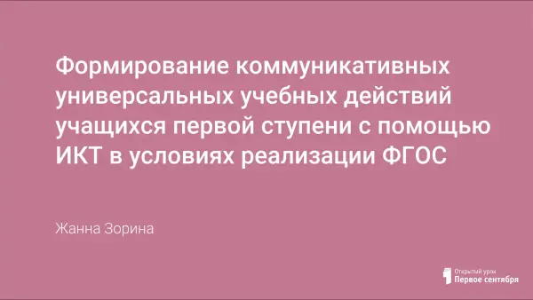 Формирование коммуникативных универсальных учебных действий учащихся первой ступени с помощью ИКТ в условиях реализации ФГОС