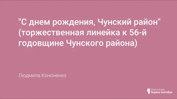 Внеклассное мероприятие, проводимое библиотекарем, знакомит учащихся с историей своего родного края. С историей появления поселка Чунский, в связи с чем было принято решение о его строительстве. Знакомство со старожилами, первыми строителями поселка.