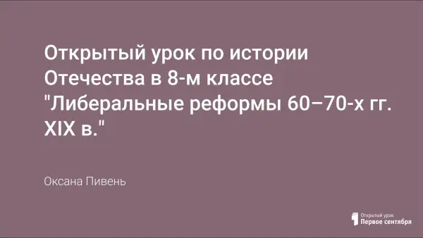 Открытый урок по истории Отечества в 8-м классе "Либеральные реформы 60–70-х гг. XIX в."