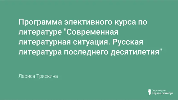 Цель курса заключается в том, чтобы помочь старшекласснику составить собственное представление о современном литературном процессе, его тенденциях, проблематике и эстетических позициях авторов произведений, получивших признание в литературной среде.