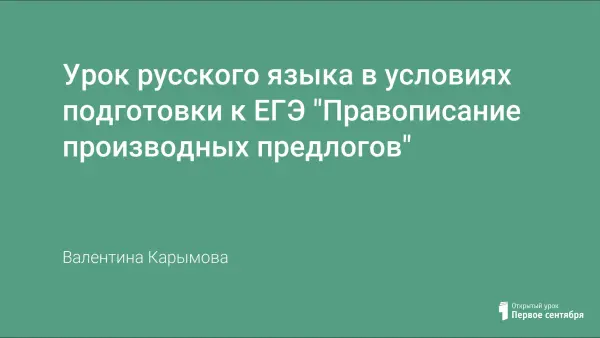 Урок призван повторить и обобщить сведения по правописанию производных предлогов, развивать умение писать производные предлоги, имеющие омонимичные формы, выдвигать гипотезы, анализировать и сравнивать, обобщать полученные данные и делать выводы; развивать устную и письменную речь учащихся.