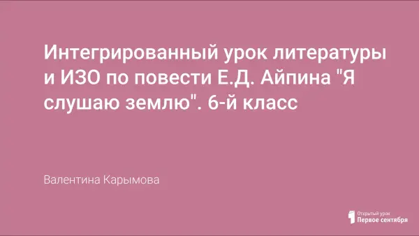 Цель урока: познакомить с творчеством Еремея Айпина, сформировать навыки самостоятельной работы с текстом, научить учащихся самостоятельно мыслить, определять главное, составлять вопросы, отвечать на них, свободно выражая свои мысли в разных видах искусства. Интеграция литературы и искусства позволит учащимся глубже вникнуть в мир, созданный писателем, понять лейтмотив его творчества.