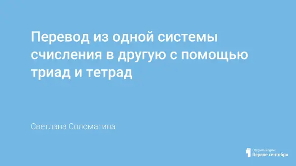Автор знакомит учащихся с «методом триад и тетрад» для перевода двоичных, восьмеричных и шестнадцатеричных чисел из одной системы счисления в другую. Развивается познавательный интерес учащихся, умения применять полученные знания на практике. Повышается уровень информационной культуры учащихся.