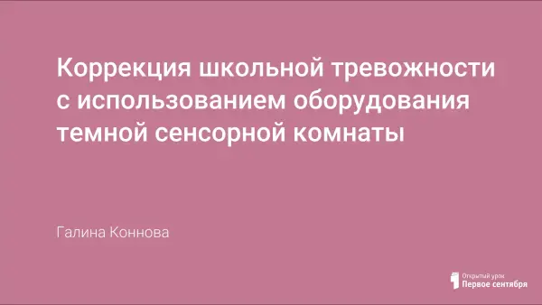 В работе представлены авторские способы применения некоторых видов оборудования тёмной сенсорной комнаты при работе с тревожными детьми и занятие для пятиклассников, имеющих высокий уровень тревожности.