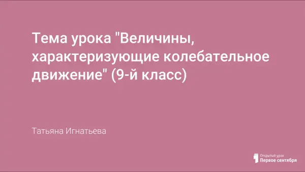 Урок в 9-м классе проводится при изучении раздела «Колебания и волны», который знакомит с основными характеристиками колебаний. Цели урока: закрепить навыки работы с формулами, навыки оформления задач, развивать представление учащихся о различных видах движения, продолжить формирование представлений о взаимосвязи явлений природы и единой физической картины мира, воспитывать умение наблюдать, слушать и делать выводы. Урок сопровождается демонстрацией презентации.