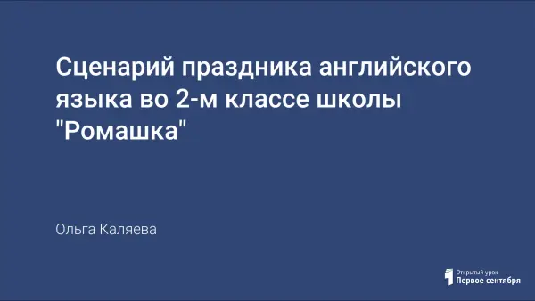 Праздник английского языка проводился в конце 4-й четверти во 2-м классе. Цель такого мероприятия заключается в активизации навыков разговорной речи детей, усилении мотивации к изучению английского языка. На празднике дети выступают в костюмах героев сказки «Теремок». Гости – родители учеников, ребята из других классов, учителя и воспитатели.