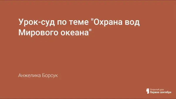 На уроке закрепляются знания по экологии и гидросфере, происходит знакомство с экологическими профессиями и бесхозным влиянием человека на воду. Урок построен по сюжету телепередачи «Суд идет».