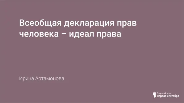 Данный урок посвящен изучению Всеобщей декларации прав человека как важного международного документа, открывшего целую эпоху по борьбе за права личности и ее свободы. Основными целями урока являются: раскрытие значимости для международного права Всеобщей декларации прав человека; формирование ценностных ориентаций и убеждений, основанных на современных правовых и моральных ценностях общества; воспитание правовой культуры учащихся.