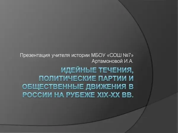Идейные течения, политические партии и общественные движения в России на рубеже XIX–XX вв.