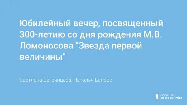 2011 год – год 300-летия со дня рождения М.В. Ломоносова. Цель занятия: показать многообразие личности М.В. Ломоносова, развитие познавательного интереса к биографии и творчеству М.В. Ломоносова; размышление о роли знаний в жизни человека, привитие гражданских и патриотических чувства на примере жизни замечательных людей; пробуждение у детей чувства гордости, восхищения, уважения к своим великим соотечественникам.