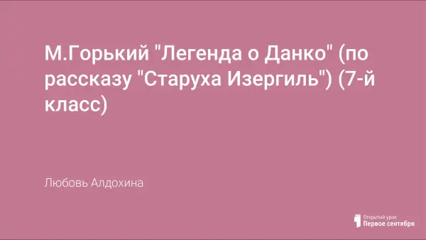 На уроке проходит изучение идейного и художественного своеобразия легенды; овладение понятием легенда; воспитание уважения к высоким нравственным качествам: бескорыстию, гордости, добру, любви к людям, служению им.