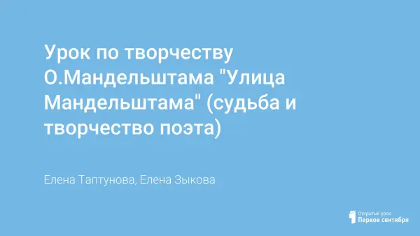 Урок по творчеству О.Мандельштама "Улица Мандельштама" (судьба и творчество поэта)