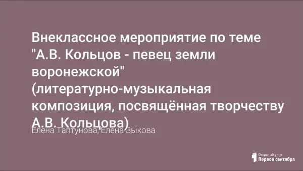 Внеклассное мероприятие по теме "А.В. Кольцов - певец земли воронежской" (литературно-музыкальная композиция, посвящённая творчеству А.В. Кольцова)