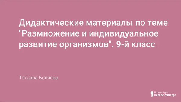 Представлены дидактические материалы к уроку биологии по теме "Размножение и индивидуальное развитие организмов".