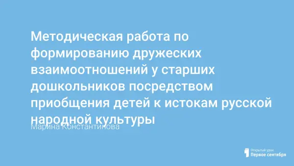 Формированию дружеских взаимоотношений у старших дошкольников способствует знакомство детей с истоками русской народной культуры. Общение и разнообразные виды детской деятельности – главные условия усвоения ребёнком нравственных общечеловеческих ценностей, национальных традиций, гражданственности, любви к своей семье и Родине, основа формирования его самосознания.