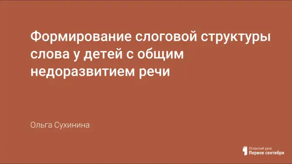 Представленный урок позволяет сделать выводы, что – процесс усвоения слогового состава слова тесно связан с речевым развитием в целом, в частности, с состоянием фонематических и моторных возможностей ребёнка. Характер слоговой структуры слова влияет на звуконаполняемость слова и на особенности звукопроизношения. При разработке системы логопедической работы необходимо учитывать усвоение слоговой структуры слова в норме.