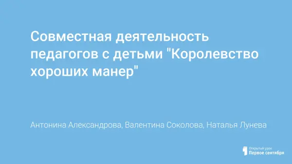 Совместная деятельность педагогов с детьми "Королевство хороших манер"