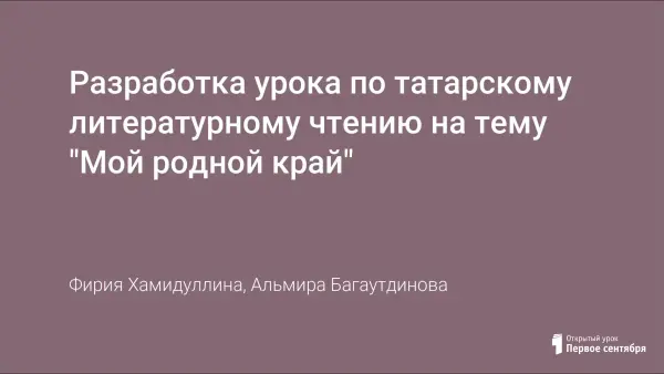 Разработка урока по татарскому литературному чтению на тему "Мой родной край"