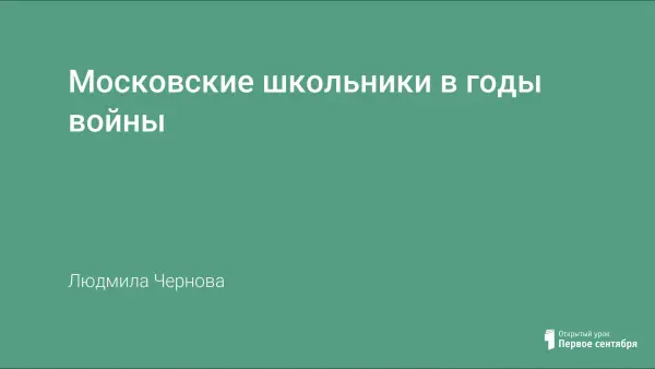 Цель занятия - изучение военной истории Москвы через жизнь школьников военных лет.