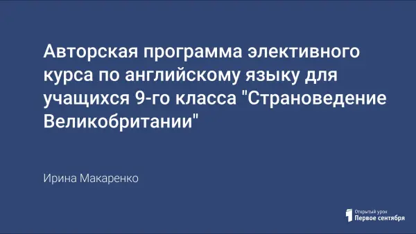 Элективный курс разработан для учащихся 9-х классов и рассчитан на 8 часов. Он способствует поддержанию и углублению интереса к изучению английского языка. Выбранные для изучения темы являются бытовыми. Они знакомят учащихся с бытовой культурой, а значит, подготавливают их к правильному поведению в стране изучаемого языка, помогают углубить и систематизировать страноведческие знания, полученные на уроках.