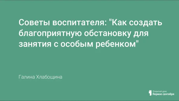 Сегодня мы поговорим о том, как создать рабочую обстановку для занятия с особым ребенком.