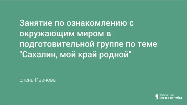 В ходе занятия дети обобщают знания о Сахалине, его природе, природных богатствах, городах и людях-тружениках. Также дети закрепляют знания о коренных жителях севера Сахалина – нивхах.