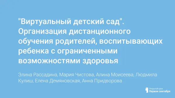 Основная цель «Виртуального детского сада» – вооружить родителей разнообразными практическими и теоретическими знаниями и умениями, которые могут им понадобиться в процессе воспитания детей с ограниченными возможностями в семье.