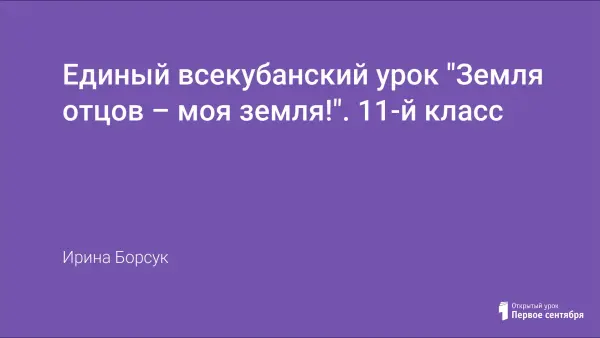Единый всекубанский урок проводится ежегодно 1 сентября. На таких уроках учащиеся не только получают знания об истории Краснодарского края, о великих людях Кубани, достижениях кубанцев, но и учатся любить свою малую родину, ценить людей, готовятся преумножать богатства края.