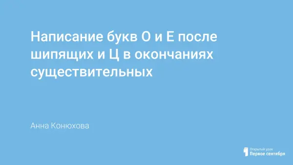 Цель урока – познакомить детей с орфограммой «Написание букв О и Е после шипящих и Ц в окончаниях существительных» и научить их применять ее на письме. На уроке используется мультимедийная презентация и показаны различные формы работы (в паре, в группе, самостоятельная работа) и интересные упражнения.
