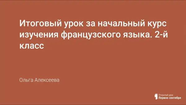 Цель урока – закрепление в игровой форме пройденного материала за курс 2-го класса. Игровая форма для данного возраста является приоритетной и влияет на повышение интереса к изучению иностранного языка. На данном уроке закрепляются знания алфавита, цифр, грамматического материала начального курса.