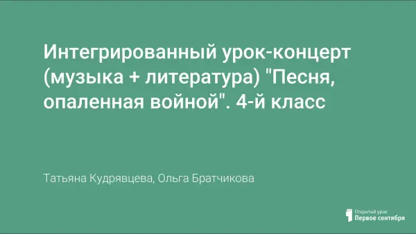Интегрированный урок-концерт (музыка + литература) "Песня, опаленная войной". 4-й класс