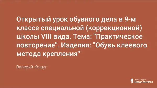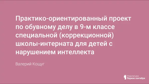 В основе представленного урока – практико-ориентированный проект по обувному делу в 9-м классе специальной (коррекционной) школы-интернат для детей с нарушением интеллекта. Цель проекта: изготовить красивые, оригинальные, удобные при носке, экологически чистые, а самое главное не дорогие комнатные туфли своими руками.
