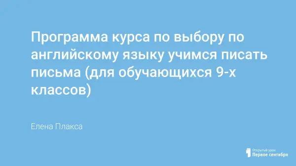 Предлагаемый курс предназначен для обучающихся 9-х классов, желающих овладеть основами письменного общения на английском языке. Данный курс является развивающее-компенсирующим курсом, основной задачей которого является тренировка речевых навыков (умений и навыков общения в письменной форме).