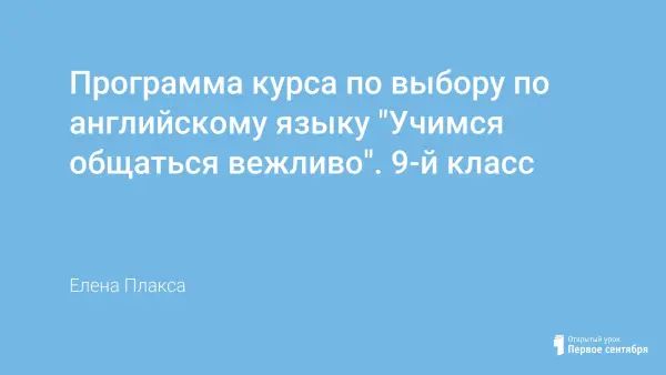 Курс предназначен для учащихся 9-х классов, желающих овладеть навыками грамотного общения на английском языке. Данный курс предлагает системный подход, облегчающий практическое освоение учебного материала, собранного для иллюстрации стратегий вежливого речевого поведения, и предоставляет возможность проверить приобретённые навыки посредством тестовых заданий.