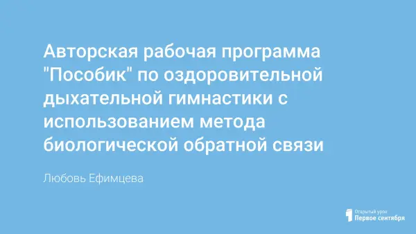 В контексте современного дошкольного образования, направленного на реализацию различных инновационных технологий обучения и воспитания дошкольников актуальной является проблема сохранения и укрепления психосоматического здоровья детей с ограниченными возможностями. Этой проблеме, а в частности, оздоровления дошкольников путем внедрения в образовательный процесс дыхательной гимнастики с использованием метода биологической обратной связи посвящена данная авторская рабочая программа.