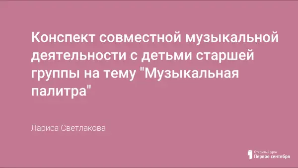 Конспект совместной музыкальной деятельности предназначен для работы с детьми старшего дошкольного возраста и направлен на формирование навыков детей в различных видах музыкальной деятельности: слушания музыки, пения, музицирования, музыкально-ритмического движения. В ходе совместной деятельности использовалось мультимедийное оборудование, был использован как программный репертуар, так и дополнительный.
