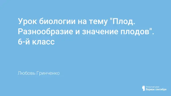 Конспект урока биологии в 6-м классе формирует понятие о плоде как о важном генеративном органе растения; знакомит учащихся с разнообразием плодов и семян, с приспособлениями плодов и семян к распространению растений; со значением плодов и семян. На уроке развивается познавательный интерес, навык работы с наглядными пособиями и натуральными объектами; воспитывается бережное отношение к окружающей среде.