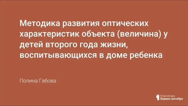 В работе рассмотрены основные цели и задачи формирования представлений о величине у детей второго года жизни. Рассмотрены методы и приемы работы, последовательность, организация и основные принципы проведения занятий. Указаны методические требования к оборудованию и материалу, включены примеры занятий по развитию оптических характеристик объекта. Данная работа будет интересна специалистам, работающим с детьми раннего возраста.