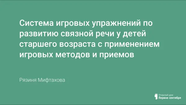В работе представлена разработанная система игровых упражнений, с применением игровых методов и приемов, для работы с детьми старшего дошкольного возраста по развитию связной речи. Материал могут использовать в повседневной деятельности и на занятиях воспитатели и специалисты дошкольных образовательных учреждений, он может быть полезен и родителям для подготовки ребенка к школе.