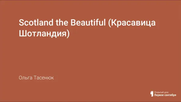 Предложенное открытое мероприятие “Scotland the Beautiful”, поддержанное презентацией, было разработано и проведено с целью заполнить нехватку информации, связанной с конкретными историческими героями и фактами, сыгравшими и продолжающими играть большую роль в жизни Шотландии. Основная задача работы – пробудить интерес к этой части Соединенного Королевства. Основная идея – истоки существующих противоречий лежат в истории страны