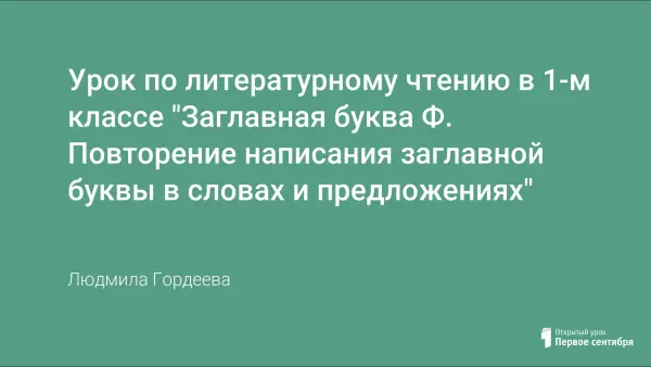 На данном уроке дети знакомятся с заглавной буквой Ф, новыми словами: Фили, Феодосия, Флоренция, Франция, Афанасий Фет, Федор Тютчев. Закрепляют написания заглавной буквы в словах и предложениях. Совершенствуются навыки в чтении и письме слов и предложений с изученными буквами. Прививается любовь к родной природе и интерес к происхождению своей фамилии.
