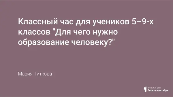 Классный час для учеников 5–9-x классов призван объяснить детям, что такое образование.