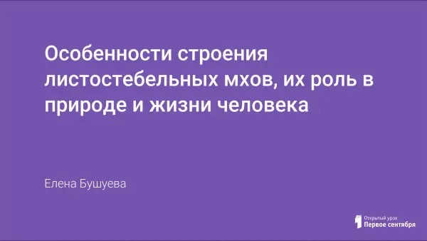 Урок является пятым в теме «Царство Растения» (программа В.В. Пасечника), но имеет первостепенное значение, так как с мхов начинается изучение высших растений, и от того, как будут усвоены знания этого урока, зависит понимание последующих тем.