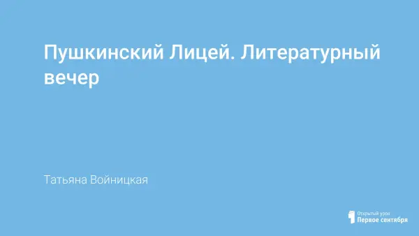 Материал предназначен учителям литературы для использования на уроках внеклассного чтения и во внеурочной работе. «Оживляет» яркие и незабываемые образы юного Александра Пушкина и его друзей-лицеистов. Расширяет кругозор учащихся, прививает любовь к поэтическому слову, воспитывает нравственно и эстетически, развивает речь, приобщает к прекрасному.