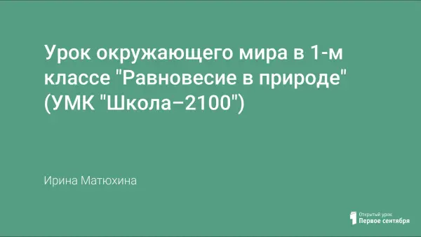 Урок построен в форме исследования с использованием технологии проблемно-диалогического обучения. Цель – сформировать начальное представление о биотическом круговороте веществ и экологическом равновесии, связывающих все живое и неживое. В процессе исследования дети приходят к выводу, что если что-нибудь добавить, убрать, изменить в одном звене (нарушить взаимосвязь), то изменятся и другие звенья (нарушается равновесие).