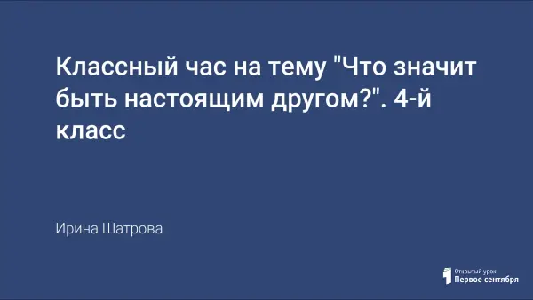 Классный час на тему "Что значит быть настоящим другом?". 4-й класс